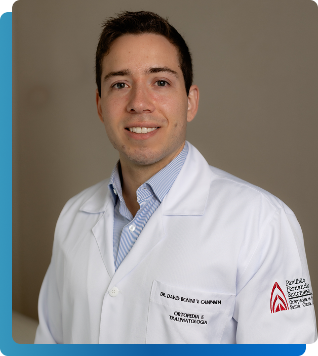 Dr. David Bonini é formado pela UFMT, especialista em Ortopedia e Traumatologia pela Santa Casa de São Paulo, membro titular Sociedade Brasileira de Trauma do Esporte (SBRATE), membro titular Sociedade Brasileira de Ortopedia e Traumatologia (SBOT) e médico do time feminino do RedBull Bragantino.